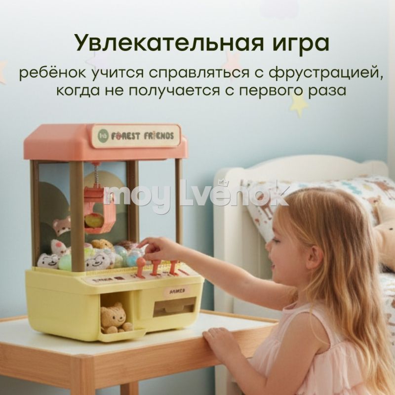 Звуковое сопровождение игрового автомата с игрушками делает игру ещё интереснее: мелодии и яркие сигналы создают атмосферу настоящего развлекательного центра.