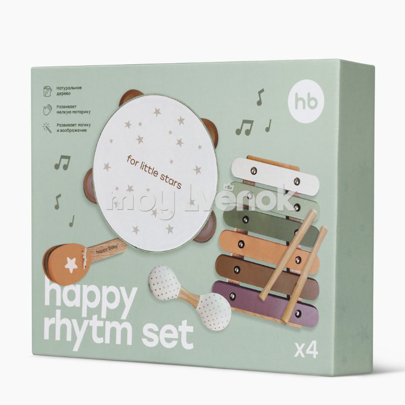 Музыкальные игрушки для малышей от Happy Baby помогают ребёнку познавать мир звуков и ритмов через игру. В комплект входят инструменты, каждый со своим уникальным звучанием: звонкий ксилофон детский, шуршащие маракасы музыкальные, звенящий бубен музыкальный и щёлкающие кастаньеты. Разнообразие тембров развивает у ребёнка слух, музыкальное восприятие и внимание.