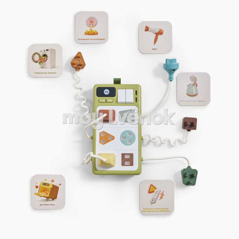 • Развитие логики и моторики – набор обучает безопасному обращению с электрическими приборами через игровую форму. Малыш учится правильно подбирать вилки к разъёмам, ориентируясь на их цвет и форму, тренируя логическое мышление, зрительное восприятие и координацию движений.