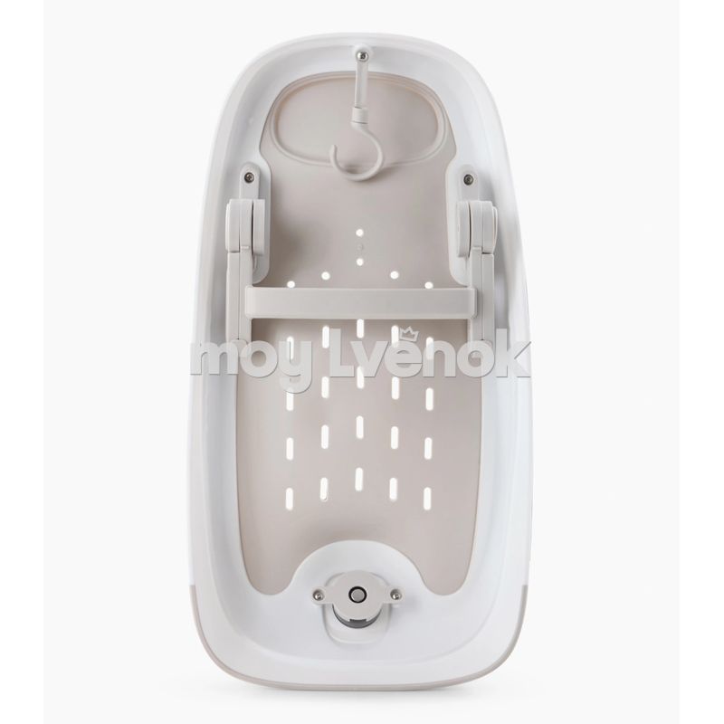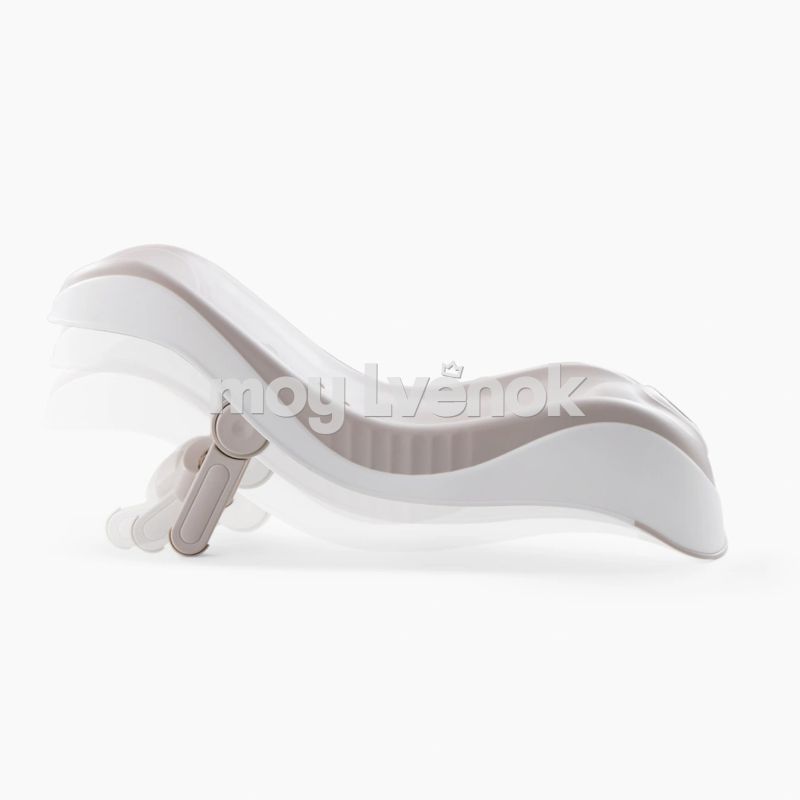 - Анатомическая поддержка — специальный изгиб надежно фиксирует ребенка в полулежачем положении, как в гамаке для купания, предотвращая соскальзывание и давая родителям свободу действий.