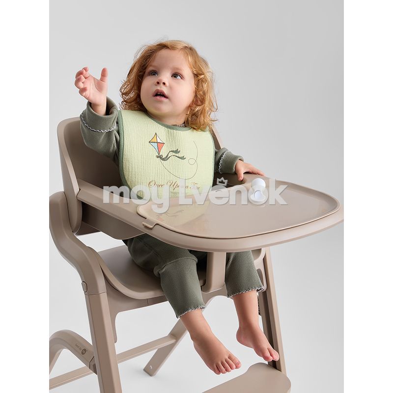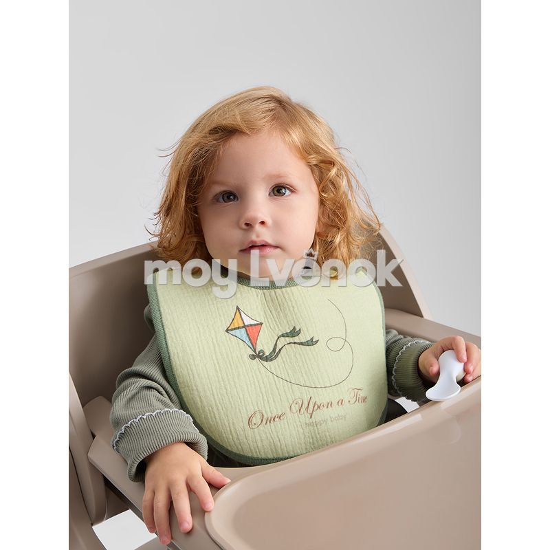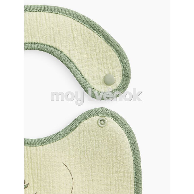 Нагрудник с влагонепроницаемой подкладкой и застёжкой на кнопку — защищает одежду малыша во время кормления, удобно снимать и надевать.