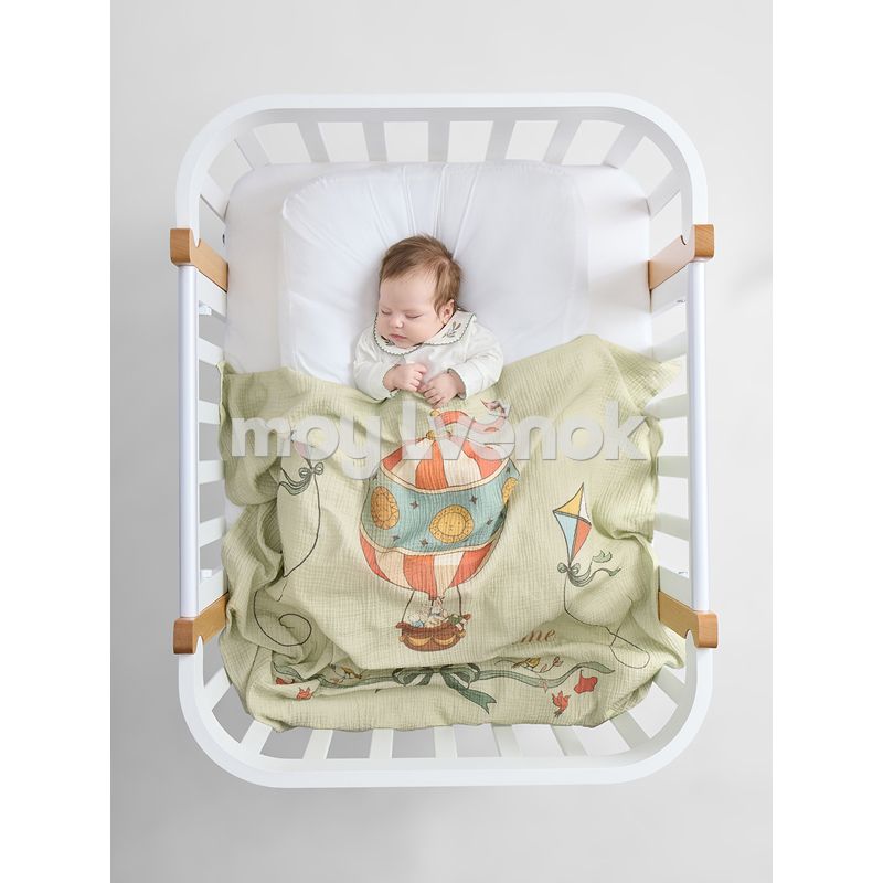 Муслиновая пелёнка из 100% хлопка — лёгкая, дышащая и мягкая, подходит для сна, пеленания и прогулок.