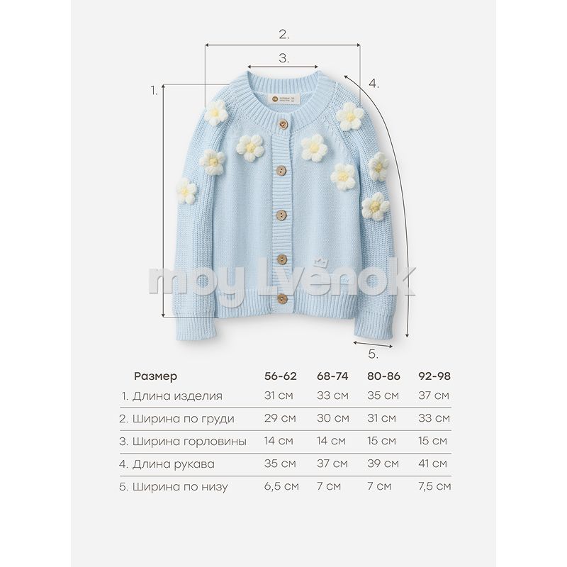 удобная застёжка на пуговицы облегчает надевание и снятие кофты — это особенно важно для новорождённых;