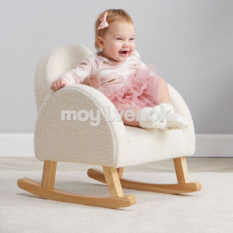 Кресло в детскую комнату подходит и для девочек, и для мальчиков, гармонично вписывается в интерьер и может стать любимым местом для чтения или расслабления. Надёжный деревянный каркас и приятная на ощупь обивка "барашек" делают такую качалку для малышей комфортной и долговечной.