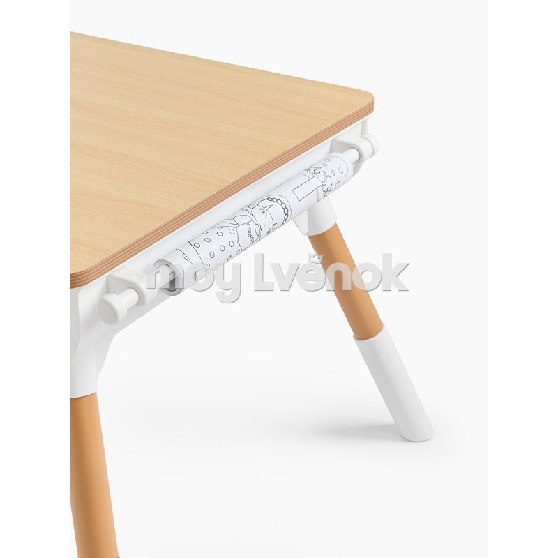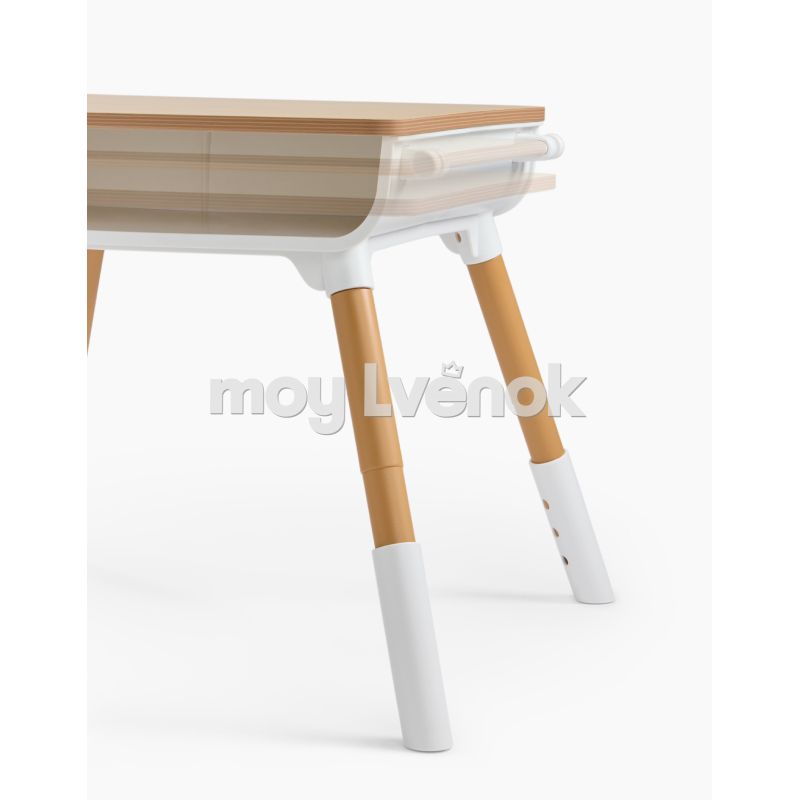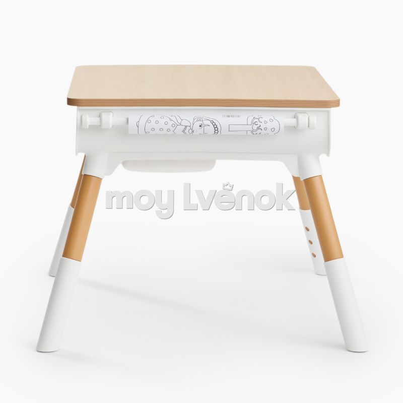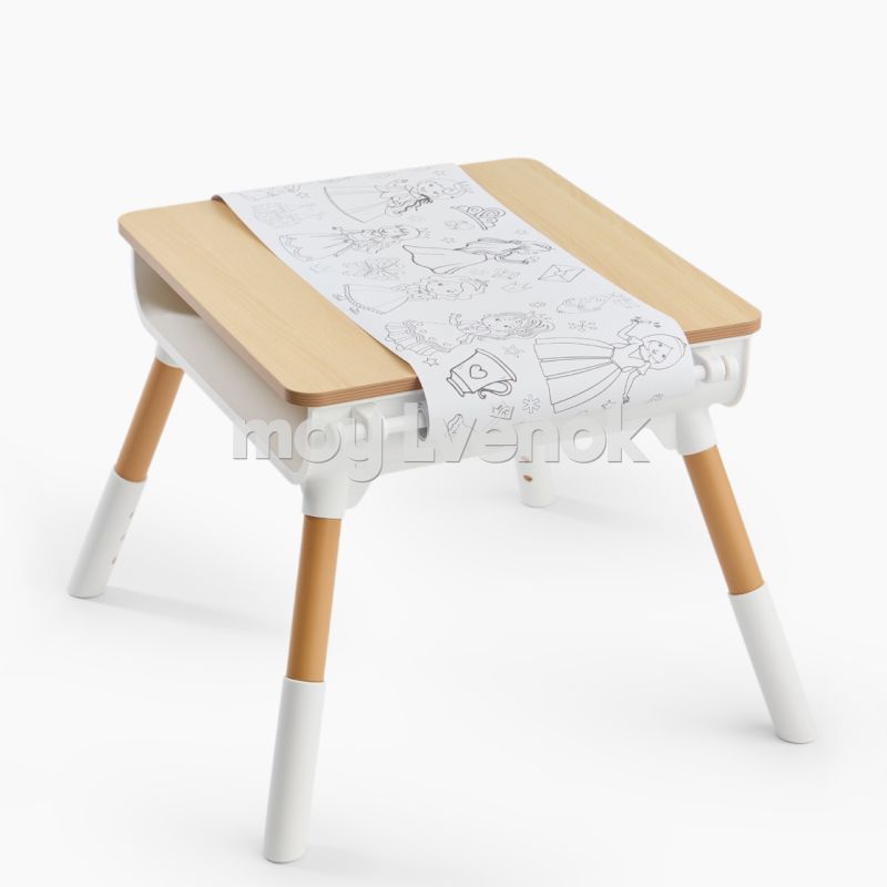 Стол оснащен органайзером, держателем для рулона бумаги и безопасной столешницей без острых углов.