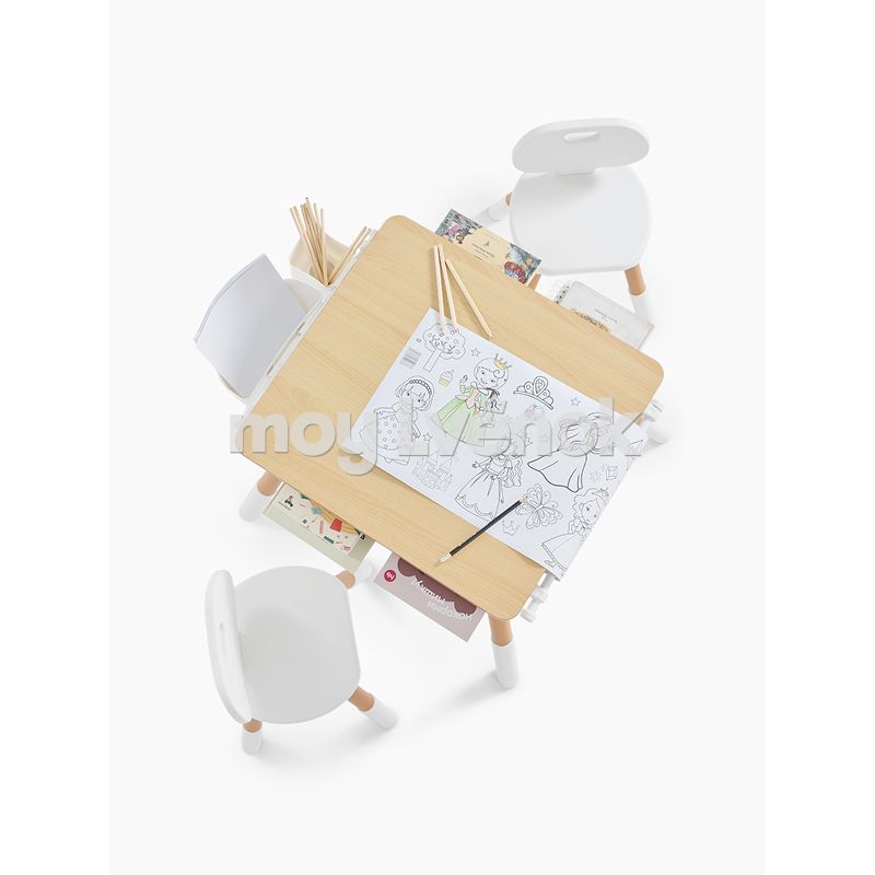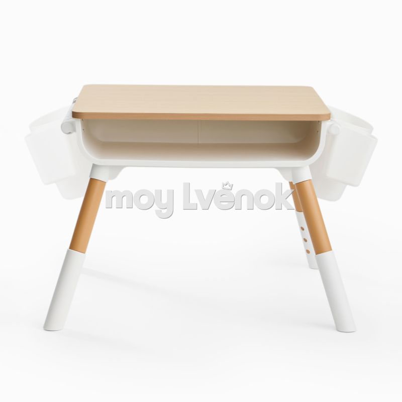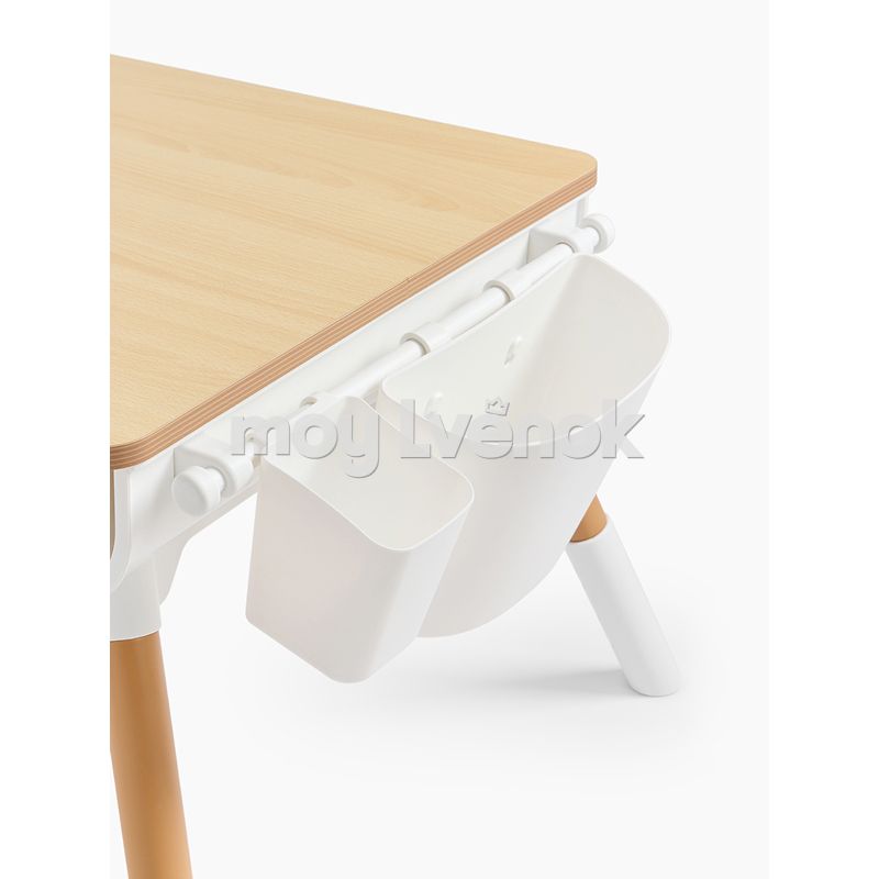 Для удобства под столешницей предусмотрены две открытые ниши с двух противоположных сторон: для каждого ребёнка своя отдельная зона для хранения вещей.
