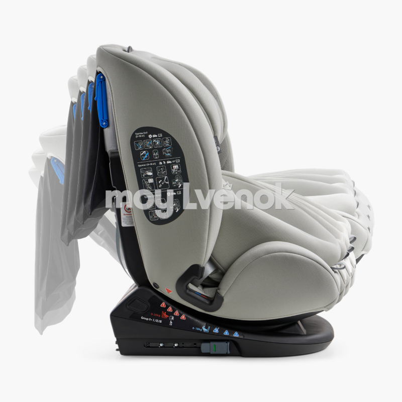 - 11 положений подголовника и 7 положений наклона спинки — подстройка под рост и предпочтения ребёнка от 0 до 12 лет