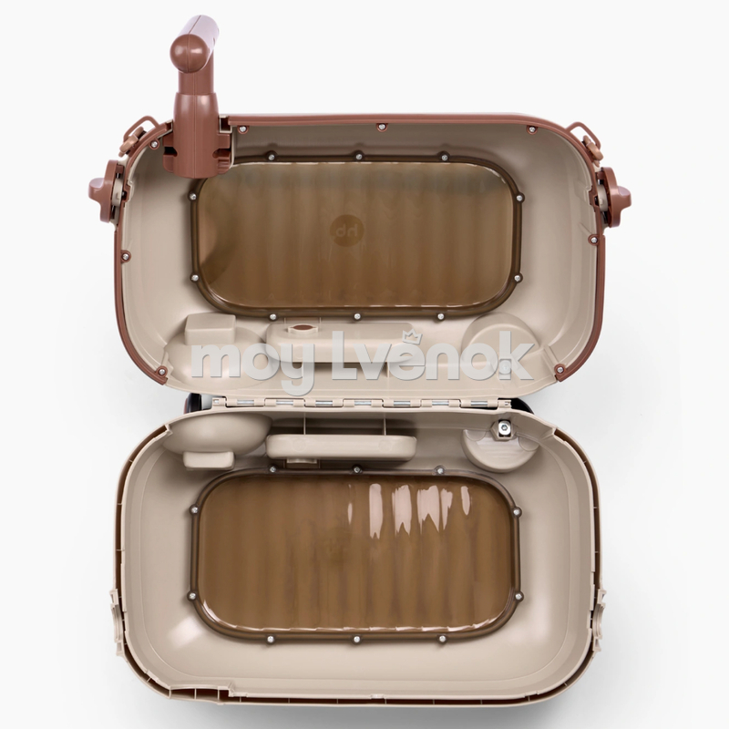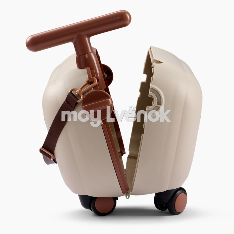 Ребёнок сможет кататься на чемодане, как на машинке, и перевозить внутри свои любимые игрушки.