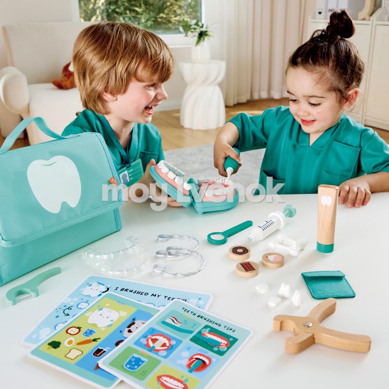 Игровой набор «Добрый доктор» Стоматологическая клиника от Hape — это увлекательный и познавательный комплект для детей, который помогает познакомиться с основами стоматологии и гигиены полости рта. Ребёнок сможет почувствовать себя настоящим стоматологом, используя реалистичные инструменты и аксессуары.
