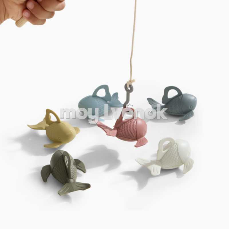 - Процесс ловли рыбок на силиконовый крючок стимулирует сенсорный опыт, показывает механику работы настоящей удочки и развивает координацию и внимание ребенка.