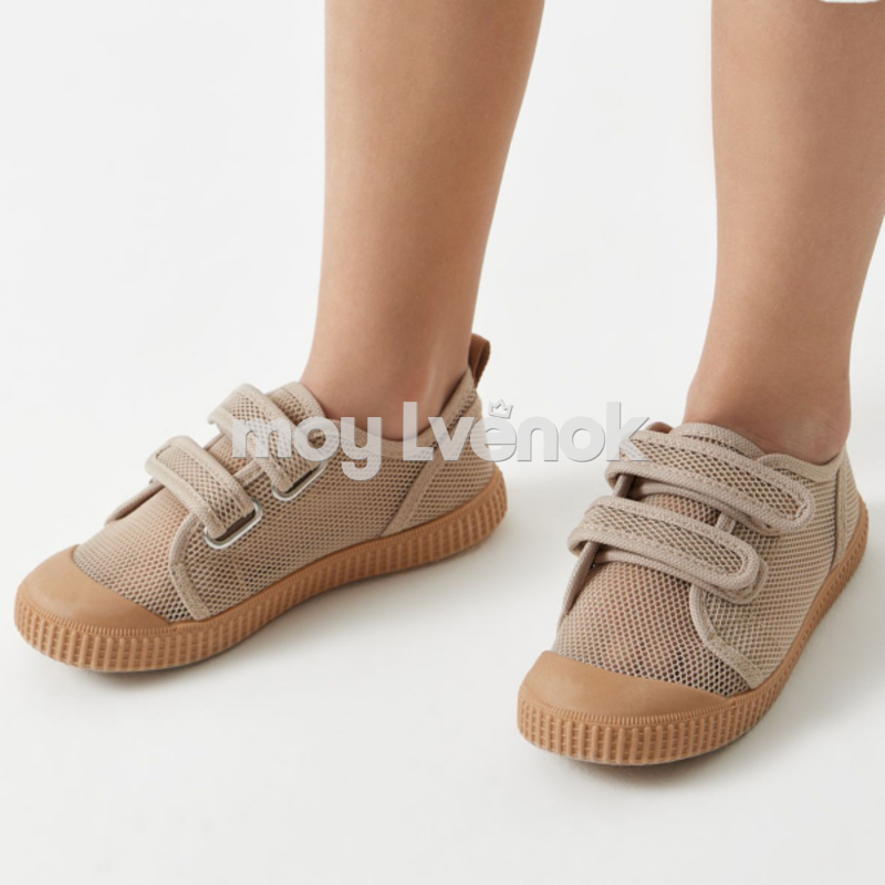 Легкие и стильные кеды подойдут девочкам и мальчикам. Модель для девочек дополнительно украшена стильной рюшей. Молочный и бежевый варианты сочетаются с самой разной одеждой – от спортивных костюмов до воздушных платьев. Обувь легкая. Материалы просты в уходе и выдерживают активные прогулки. Простая застежка на липучку позволит быстро надевать и снимать изделие. • просты в уходе • классический лаконичный дизайн • легкие и прочные