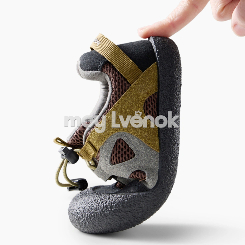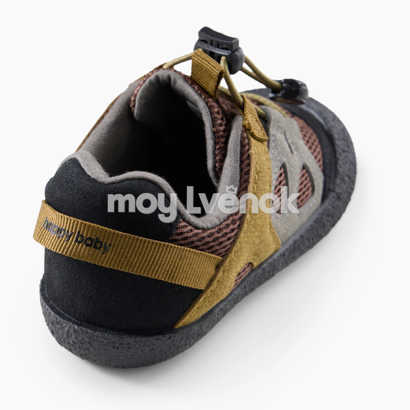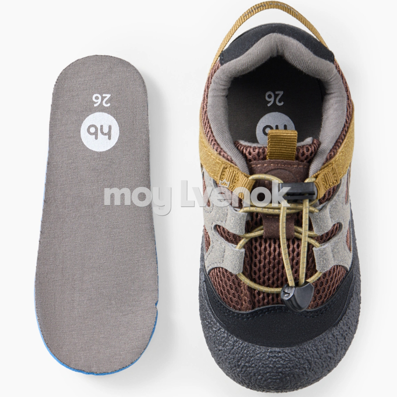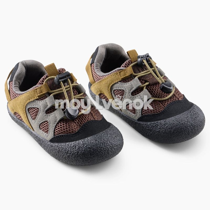 Модель оснащена удобной системой быстрой шнуровки с фиксатором — ребёнок сможет легко надеть и снять обувь самостоятельно. Усиленный прорезиненный носок защищает пальцы от ударов и продлевает срок службы обуви. Контрастные элементы в оттенках хаки и коричневого придают кедам стильный outdoor-дизайн.