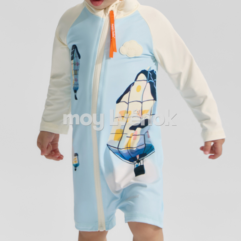 - Купальный комбинезон для новорожденного с длинными рукавами защищает от ультрафиолета.