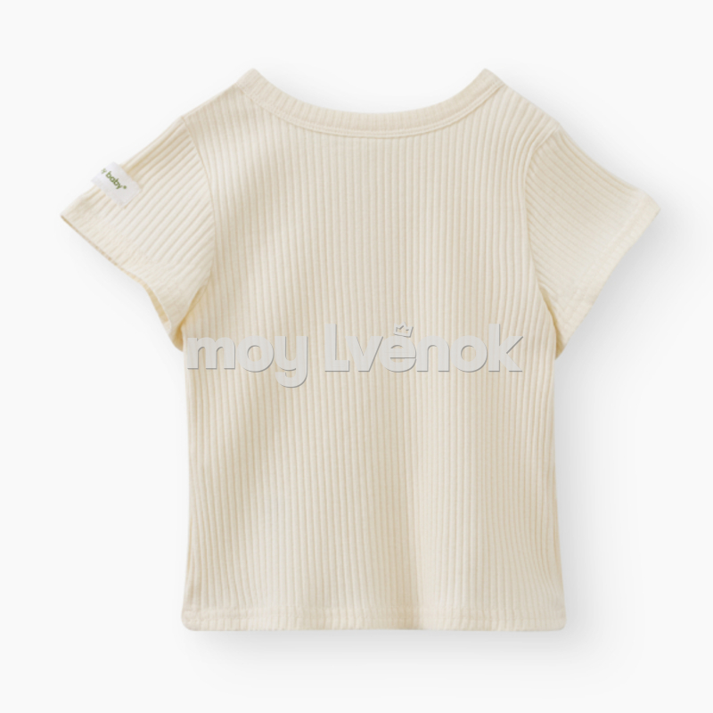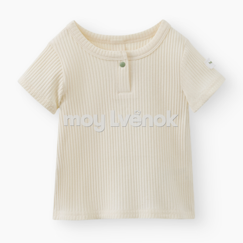 - Трикотажная футболка из рибаны без воротника и застежкой поло на пуговицах