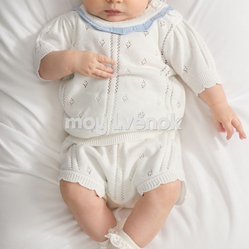 Летняя одежда выглядит аккуратно и стильно, благодаря чему набор для новорожденных можно носить как повседневный образ для прогулок или домашнюю пижаму.