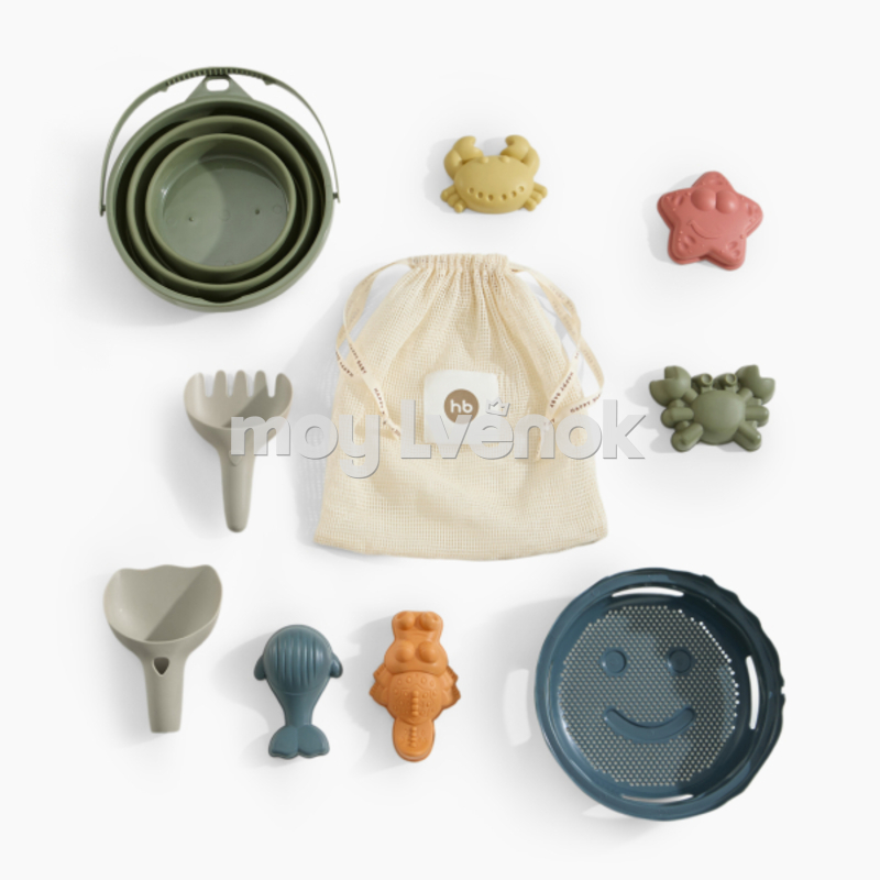 Набор для песочницы от Happy Baby создан для активного отдыха детей и веселых игр на улице. В игровой набор входит все необходимое: формочки для песка, лопатка, грабли, ведерко, сито и мешочек. Игрушки для песочницы развивают мелкую моторику, координацию движений и креативность.