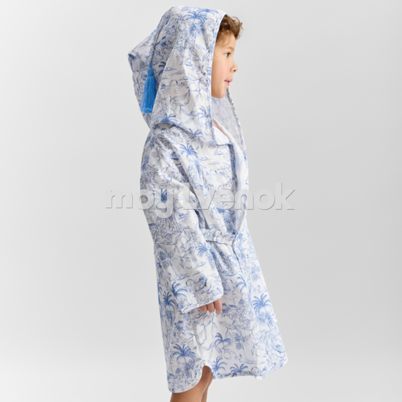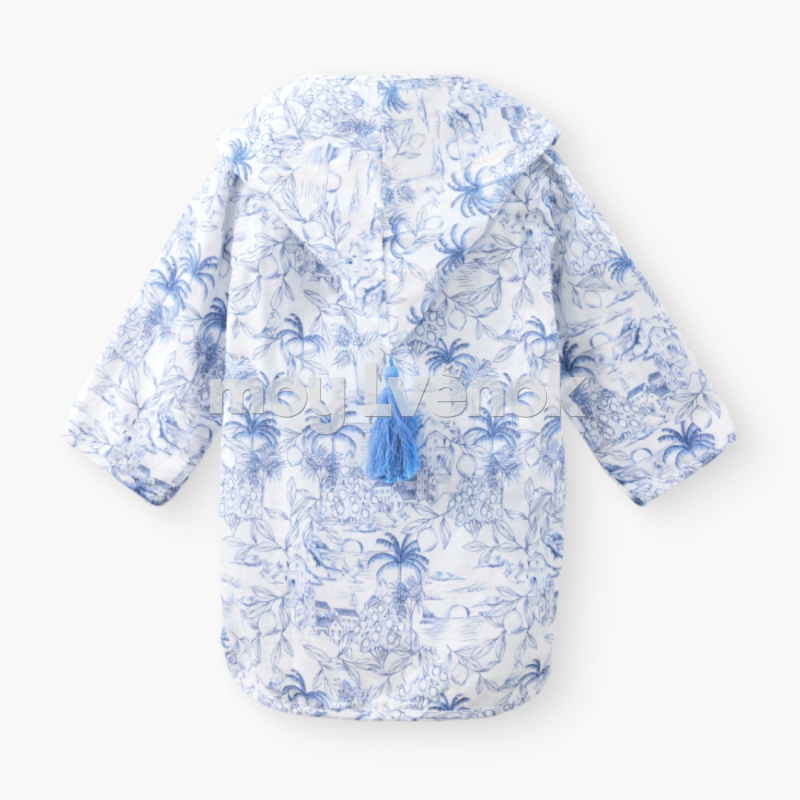 Пончо детское — лёгкая пляжная накидка для девочки и мальчика. Такая пляжная туника для девочки становится удобной частью детской одежды. Пончо для мальчика выполнено из 100% хлопка — мягкого и дышащего материала, который подходит для детской кожи.