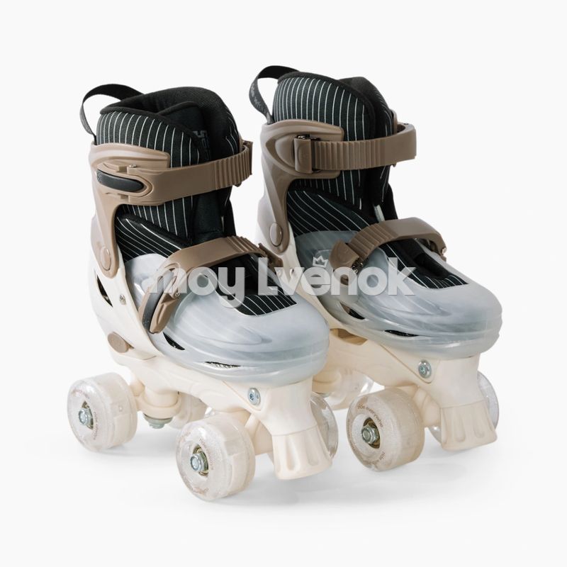 Три режима катания расширяют возможности использования комплекта. Четырёхколёсные квады подходят для первых тренировок и обучения, помогая ребёнку уверенно сохранять равновесие. Роликовые коньки с четырьмя колёсами способствуют развитию координации и баланса.