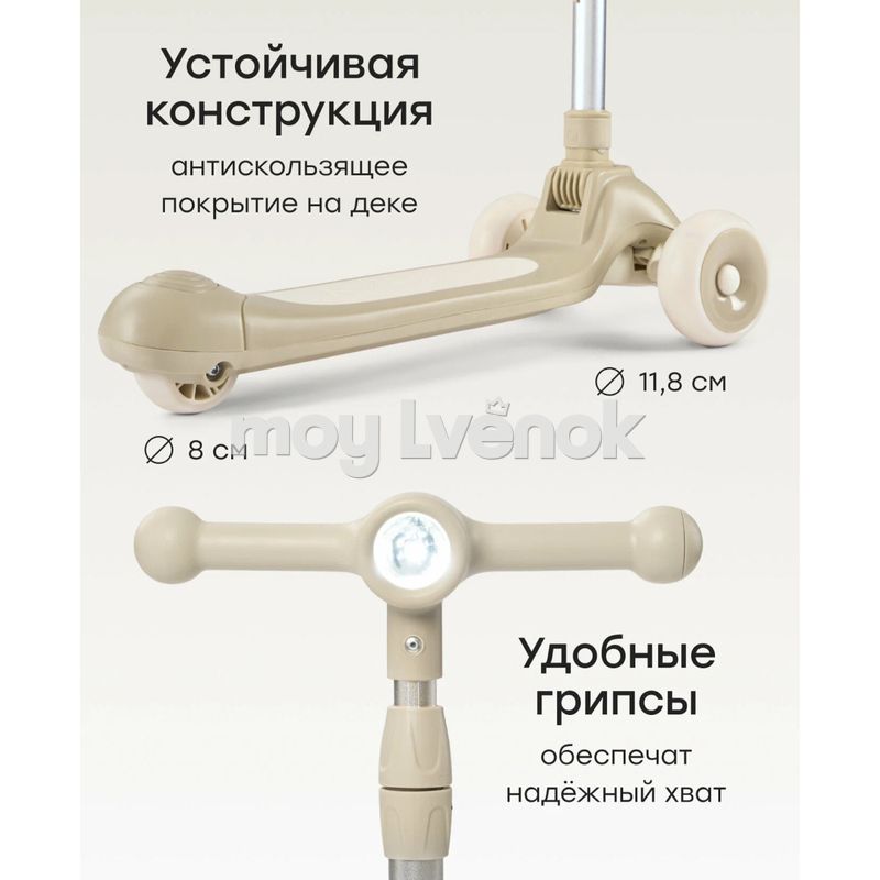 - Трехколесная конструкция — гарантирует максимальную устойчивость и безопасность, даже когда ребенок только учится кататься.