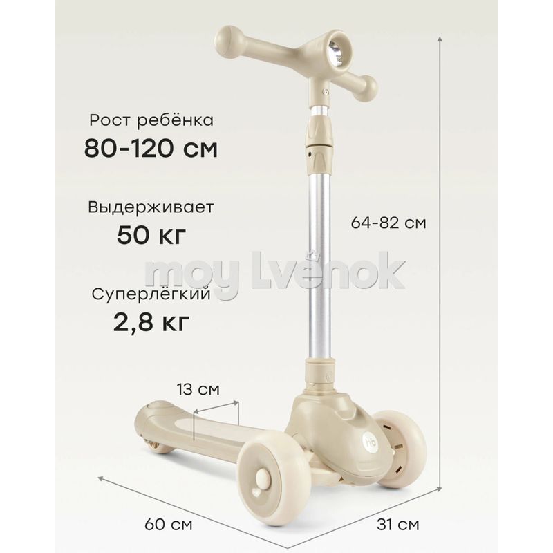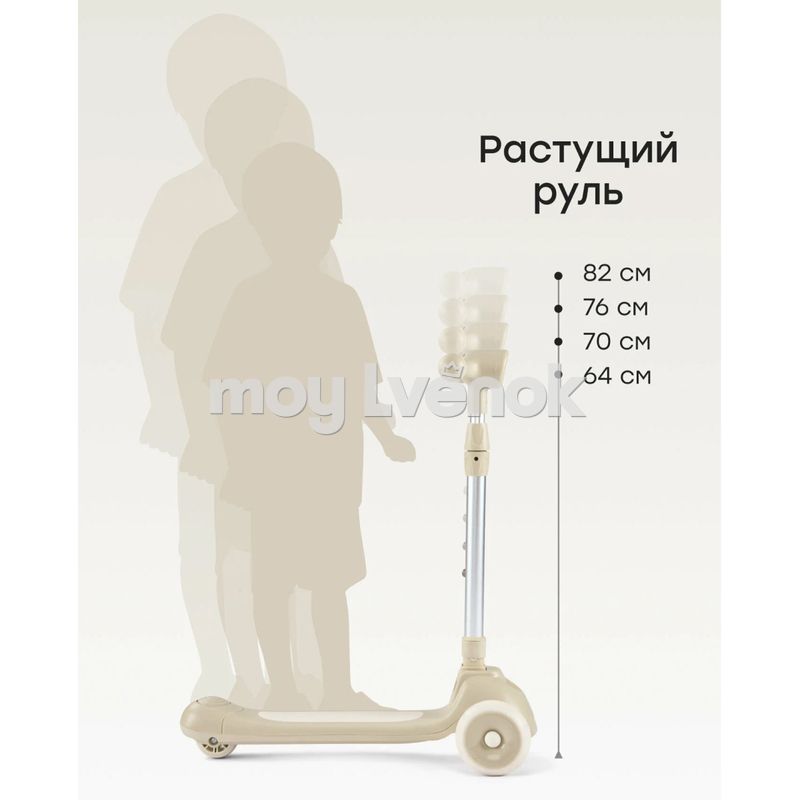 - Регулируемый по высоте руль легко настраивается под рост ребенка. Самокат будет расти вместе с малышом и обеспечит комфорт на протяжении долгого времени.