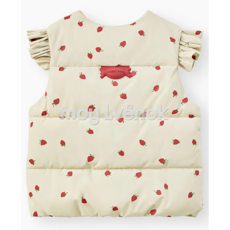 Модель куртки-безрукавки выполнена в универсальных оттенках: однотонный серый и молочный с клубничным принтом. Утеплённая безрукавка демисезонная выполнена из болоньевой ткани с водоотталкивающей пропиткой, которая защищает от ветра и влаги.