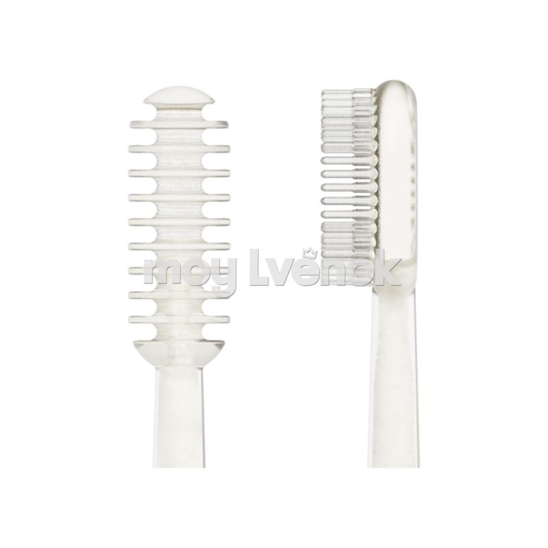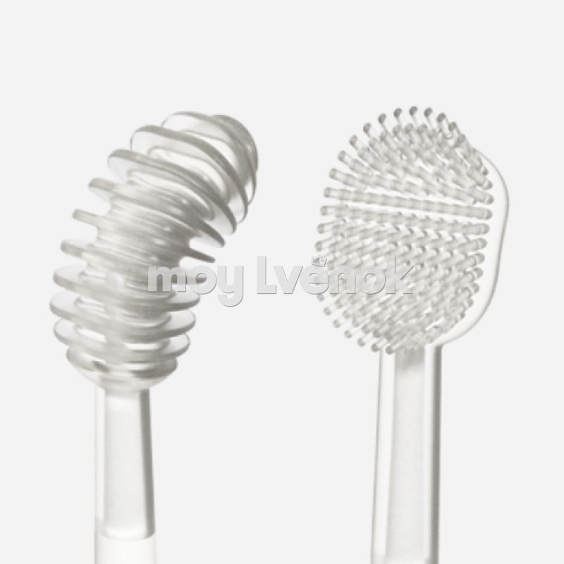 - Эффективная очистка - Двойная очистка, специально разработанная для гигиены полости рта младенцев. Одна очищает налет на языке, другая очищает молочные зубы, одновременно защищая малыша от проблем с полостью рта.