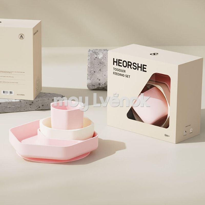 HEORSHE Набор для кормления малышей (чашка, миска, тарелка), (HOS-02-012 (PW)) PINK WHITE