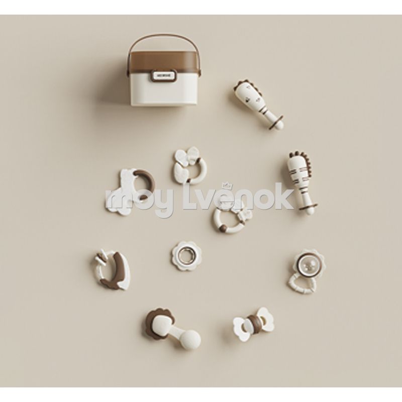 - С первых недель до первого года жизни наш набор погремушек способствует развитию познавательных и двигательных навыков благодаря мягким цветам, разнообразным текстурам и успокаивающим силиконовым прорезывателям.