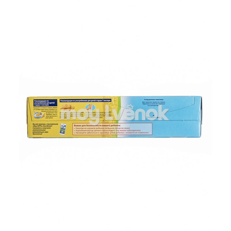 Рекомендации по употреблению для детей старше 5 месяцев: раскрошите 2-3 печенья в тарелке, добавьте 3-4 столовые ложки теплого кипяченого молока, детской молочной смеси или фруктового сока.