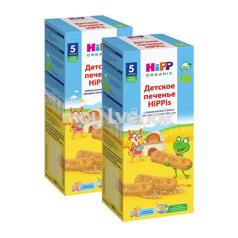 - Детское органическое печенье HiPPis с нежным вкусом отлично подойдет в качестве перекуса или полдника для малышей с 5 месяцев.