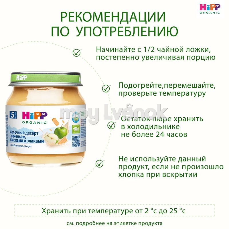 Молочные десерты HiPP Organic – это сочетание нежных фруктов, молочка и злаков, которое очень нравится малышам. Они подходят как в качестве полезного перекуса, так и десерта после основного приема пищи.