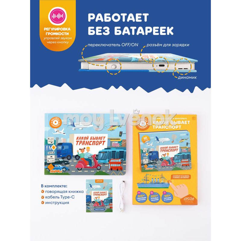 - Об этом и о многом другом ребёнок узнает из интерактивной музыкальной книжки для малышей фингербука (от англ. finger палец и book книга) «Какой бывает транспорт».
