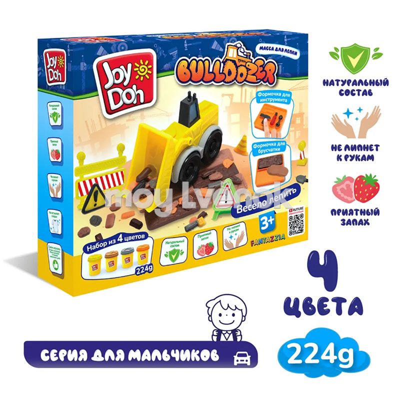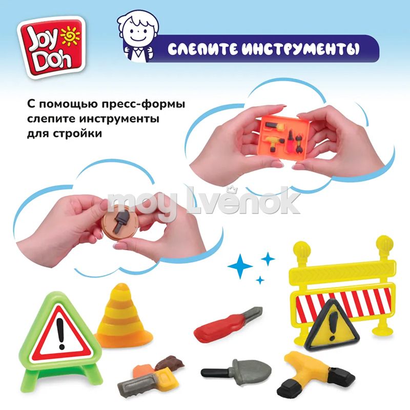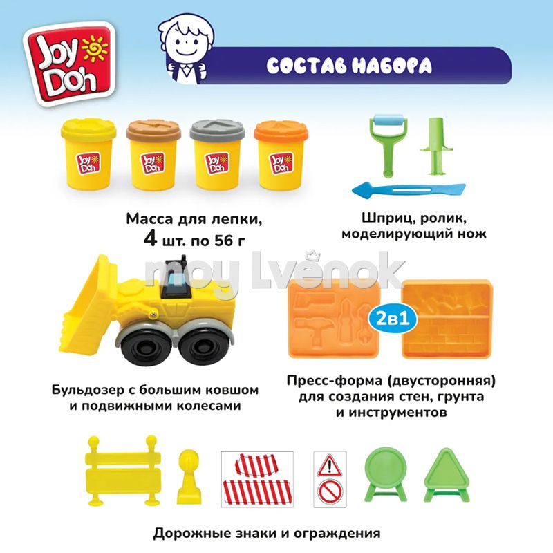 Набор для лепки Joy-Doh Бульдозер 9 аксессуаров, 4 баночки с тестом, (4 x 56 г).