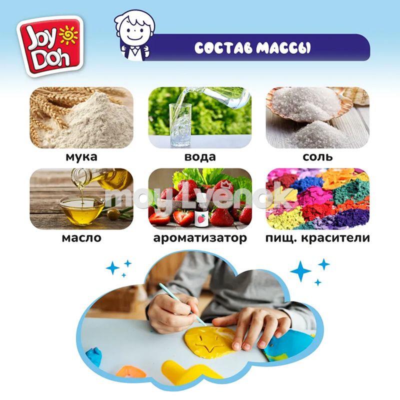 - Быстро принимает желаемую форму, малышам легко лепить любые фигурки.