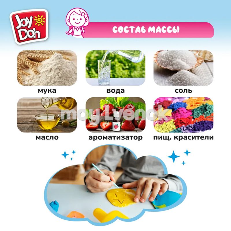 - Быстро принимает желаемую форму, малышам легко лепить любые фигурки.