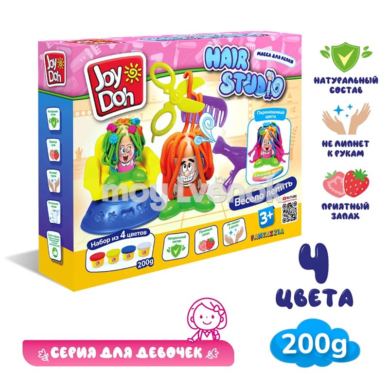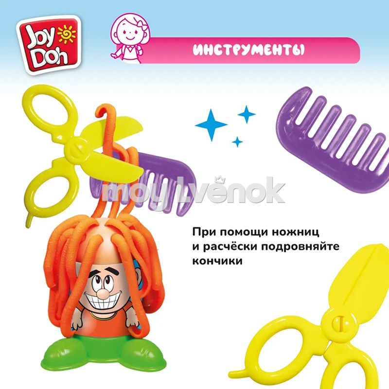 Набор для лепки Joy-Doh Прически студия 4*50г HAIR-200 pot сменные насадки, 15 аксессуаров, 4 баночки с тестом, (4 х 50 г).