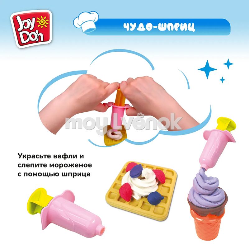 Ваш малыш любит вафли с мороженым? Набор для лепки «Ice-cream & Waffles» от Joy-Doh поможет вашему ребенку почувствовать себя настоящим кондитером! Зовите гостей, и давайте испечем настоящие вафли, сделаем мороженое с фруктами, и украсим все кремом из специального кондитерского шприца. А пресс-формы на каждой крышке банки добавят еще больше возможностей для творчества. Масса для лепки Joy-Doh - круче, чем обычный пластилин! С Joy-Doh весело лепить!