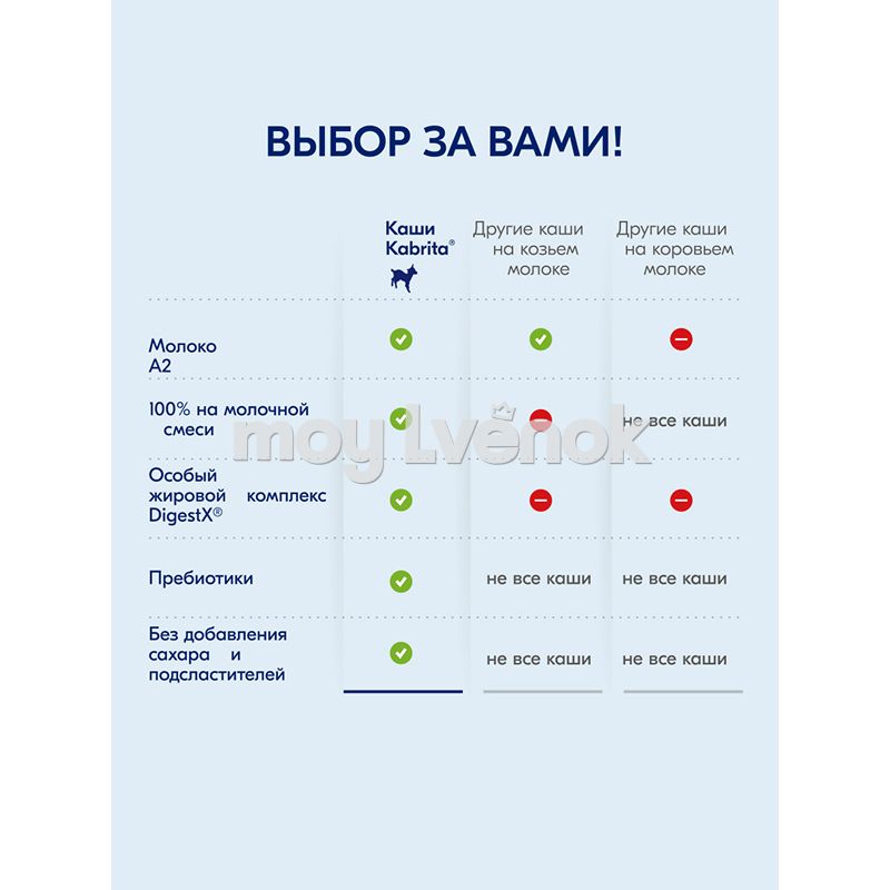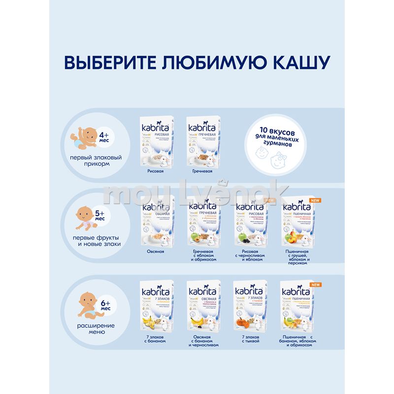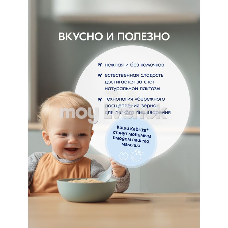 - Сочетание питательных злаков с фруктами и смесью Kabrita® из фермерского козьего молока обеспечивает высокую пищевую ценность.