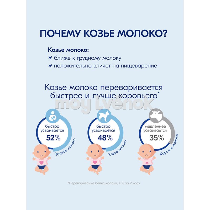 *Приготовлено без добавления кристаллического сахара, искусственных ароматизаторов и вкусовых добавок. Содержит природные сахара из натурального сырья – сухого козьего молока, лактозы, злаков, фруктов.