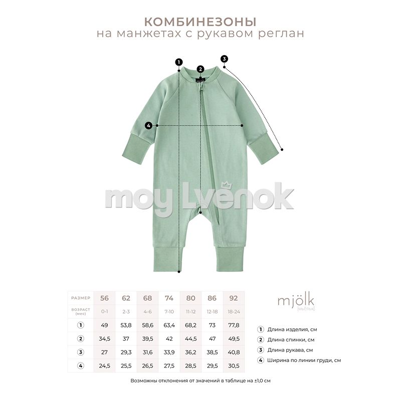 - Комбинезон Mjolk — это детский нательный комбинезон на молнии с открытой ножкой и широкими манжетами во всех размерах, выполненный из плотного и очень мягкого трикотажа.