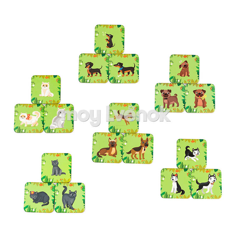- В этой веселой настольной игре вам предстоит собрать как можно больше сетов «мама, папа и малыш» из семейств милых котиков и собачек.