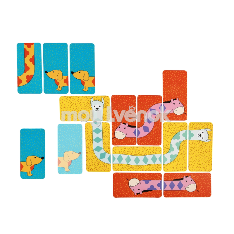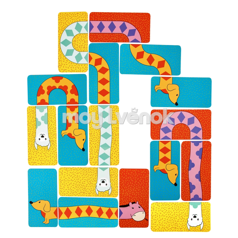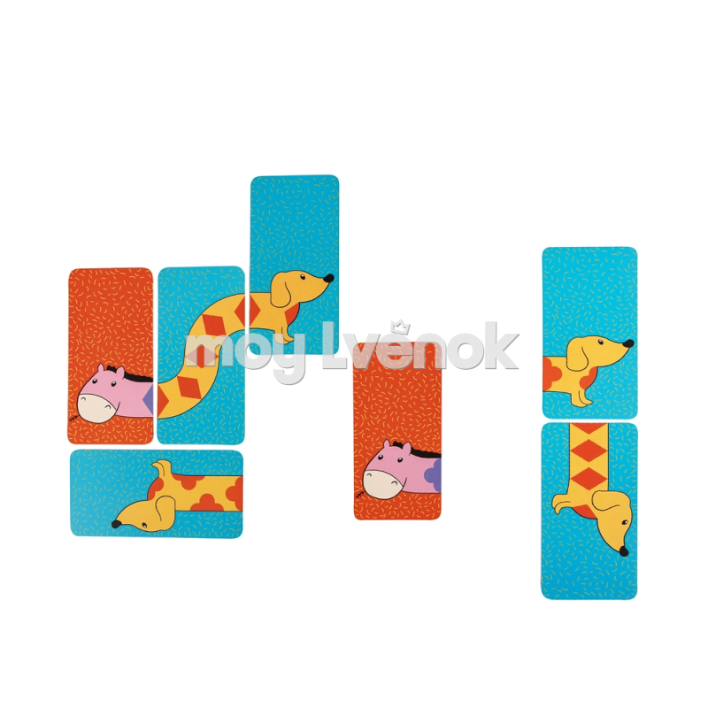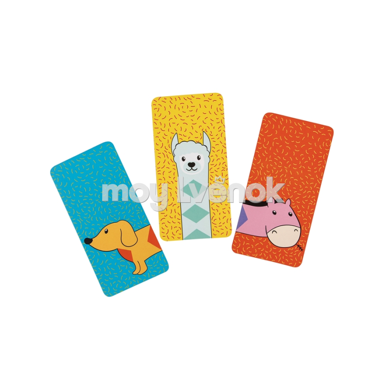 - Выложи в свой ход нужную карточку зверушки, и продолжай цепочку подходящих карточек до тех пор, пока не выложишь все.
