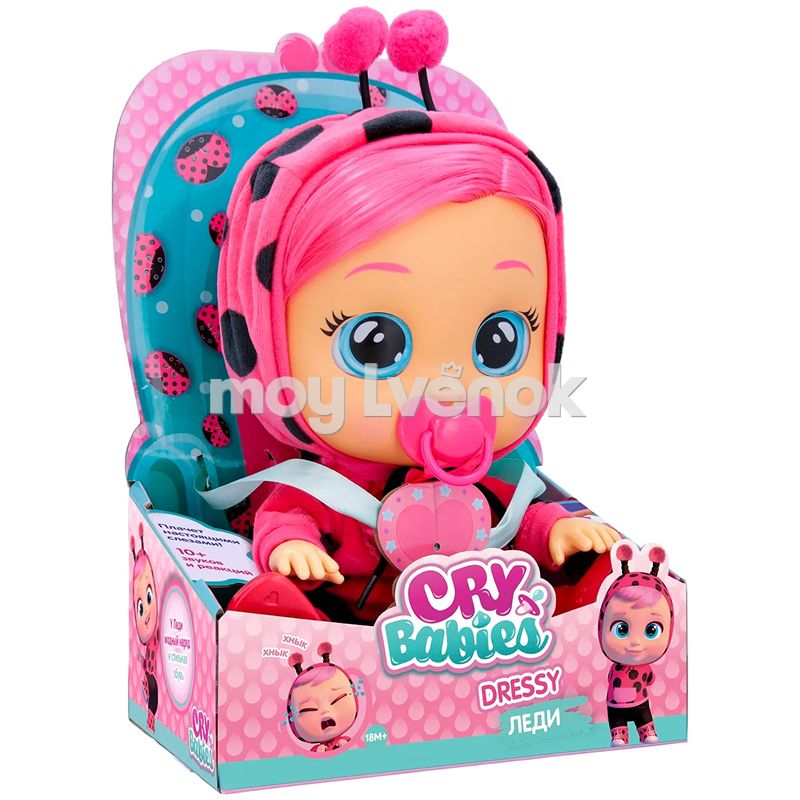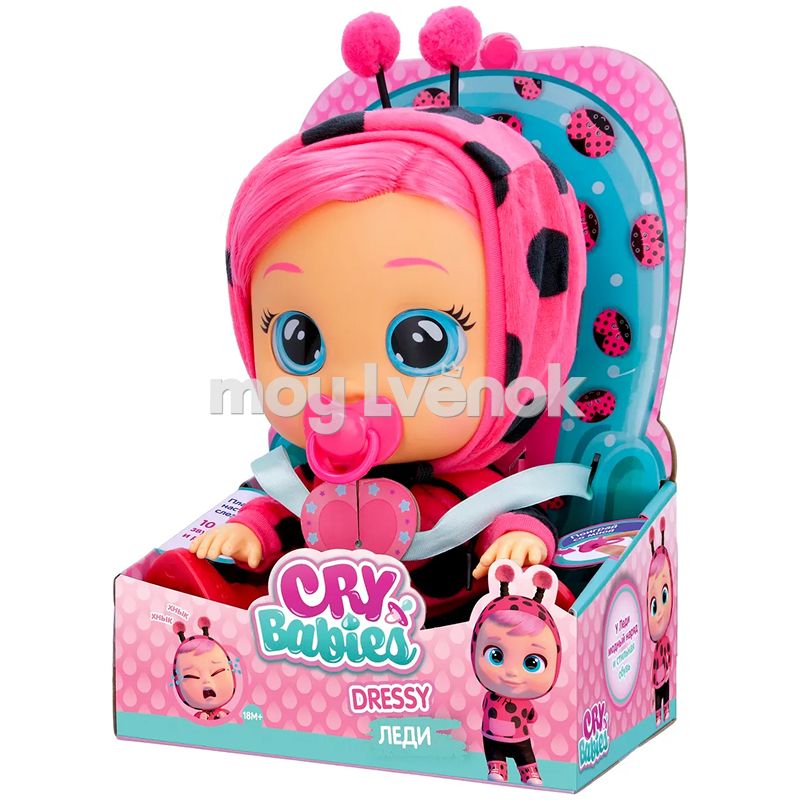 - Кукла Леди Dressy интерактивная плачущая Край Бебис высотой 30 см с подвижными ручками и ножками, с яркими волосами, съемными нарядом и обувью.