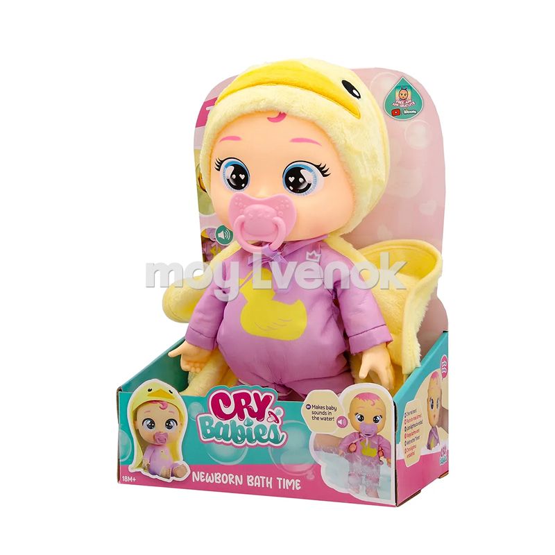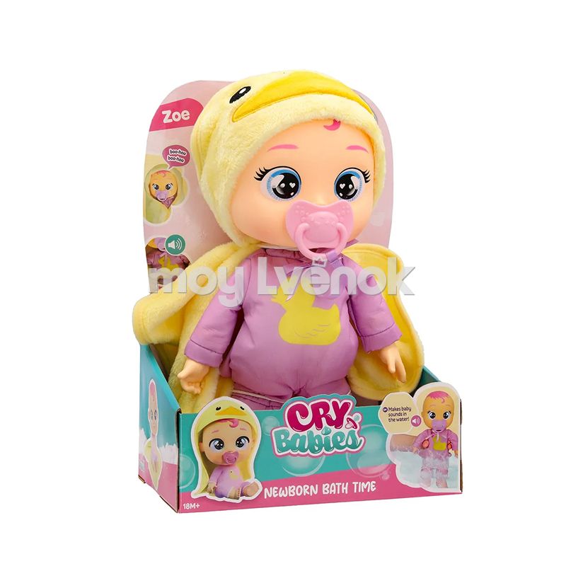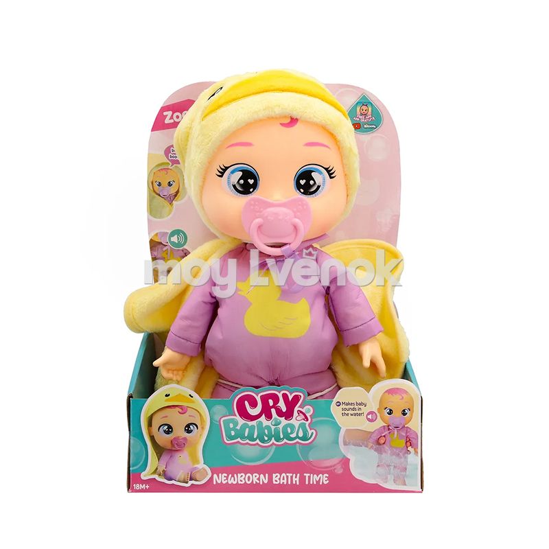 - Кукла Зои Время купания плачущая интерактивная Cry Babies высотой 29 см с пустышкой, прикрепленной к пижамке, и полотенчиком.