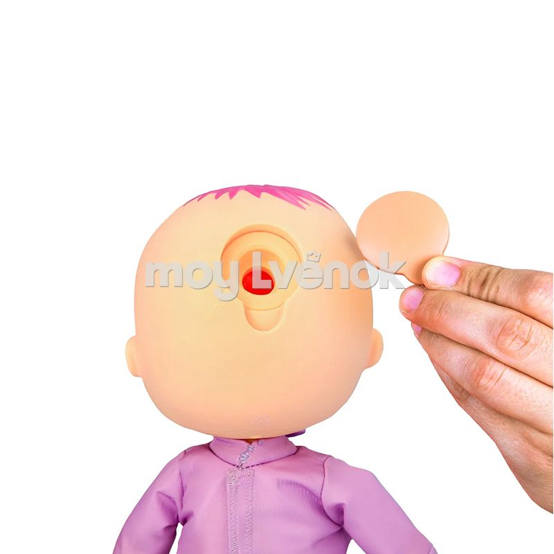 - Для того чтобы слезы вытекали из глаз при нажатии на голову, необходимо залить воду в специальный отсек на голове куклы и вынуть пустышку.