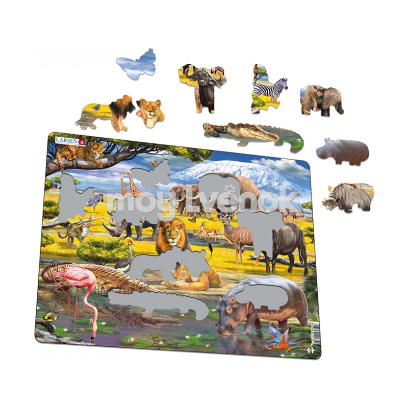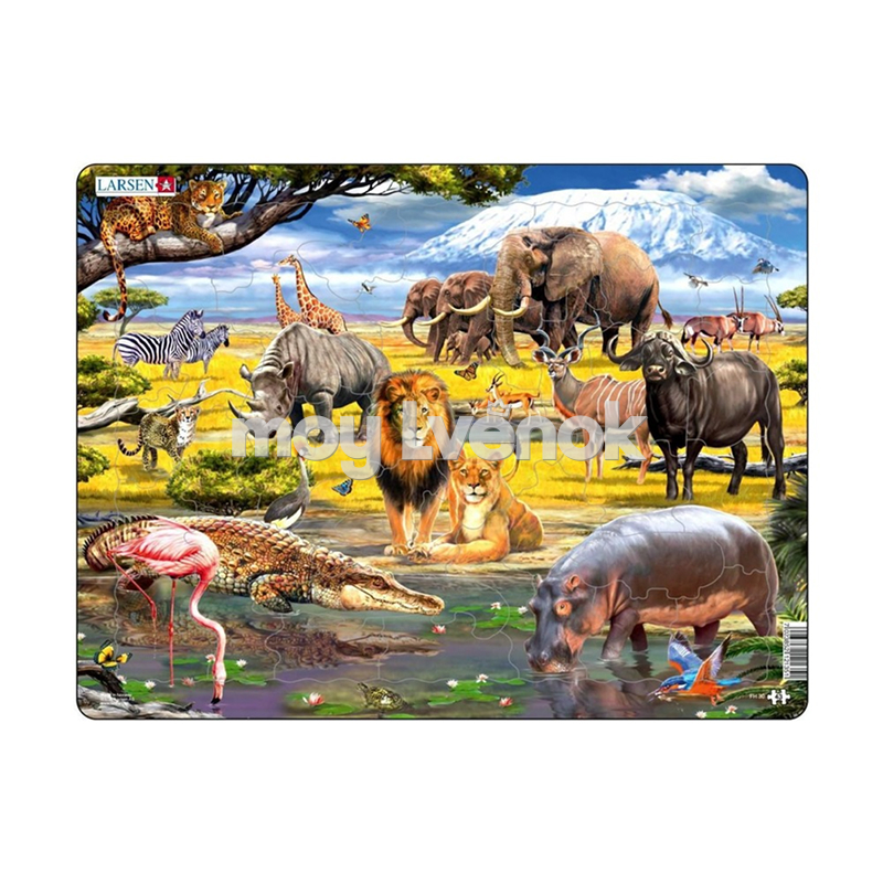 Пазл "Мир саванны" от норвежского производителя Larsen состоит из 43 элемента.