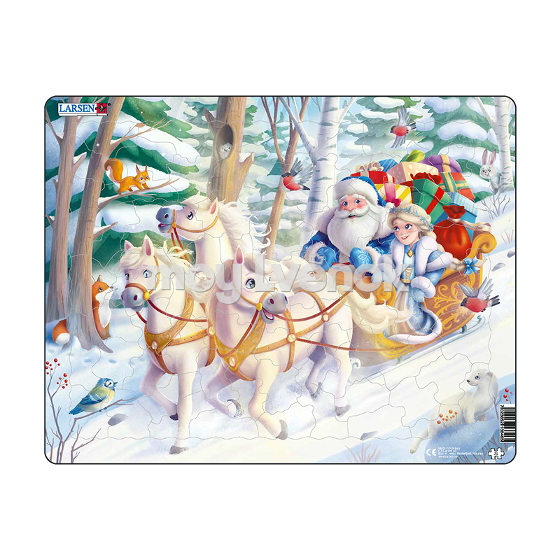 LARSEN Пазл "Новый год Лошади. Дед Мороз и Снегурочка везут подарки", 75 эл. REI149