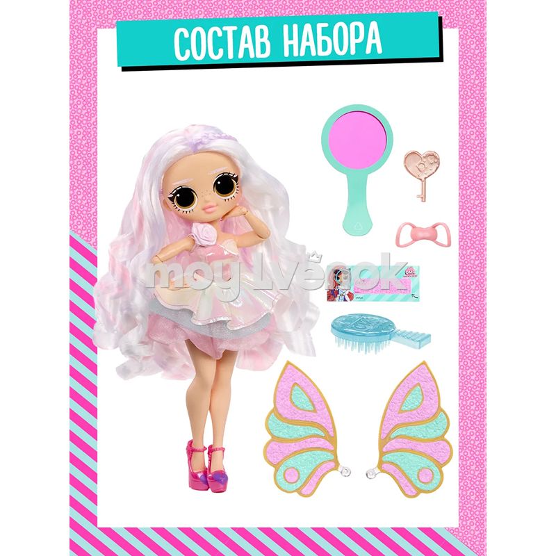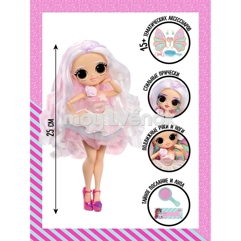 В комплекте ЛОЛ СЮРПРАЙЗ ОМГ Шпионы Кайла Фэй содержится кукла с длинными густыми прошитыми волосами, подвижными ручками и ножками, комплект одежды, обувь, модные аксессуары, секретное сообщение, лупа, расческа для куклы, подставка.