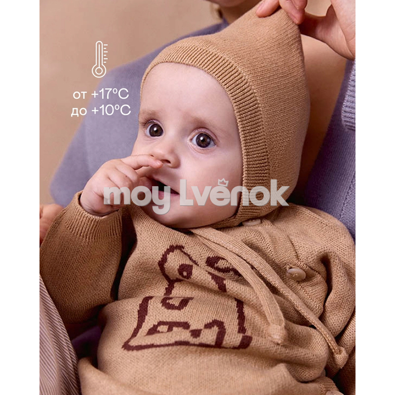 Гипоаллергенная пряжа из хлопка и шерсти обеспечивает естественный теплообмен. Эластичная вязаная резиночка не натирает чувствительную кожу и не оставляет следов на лбу.