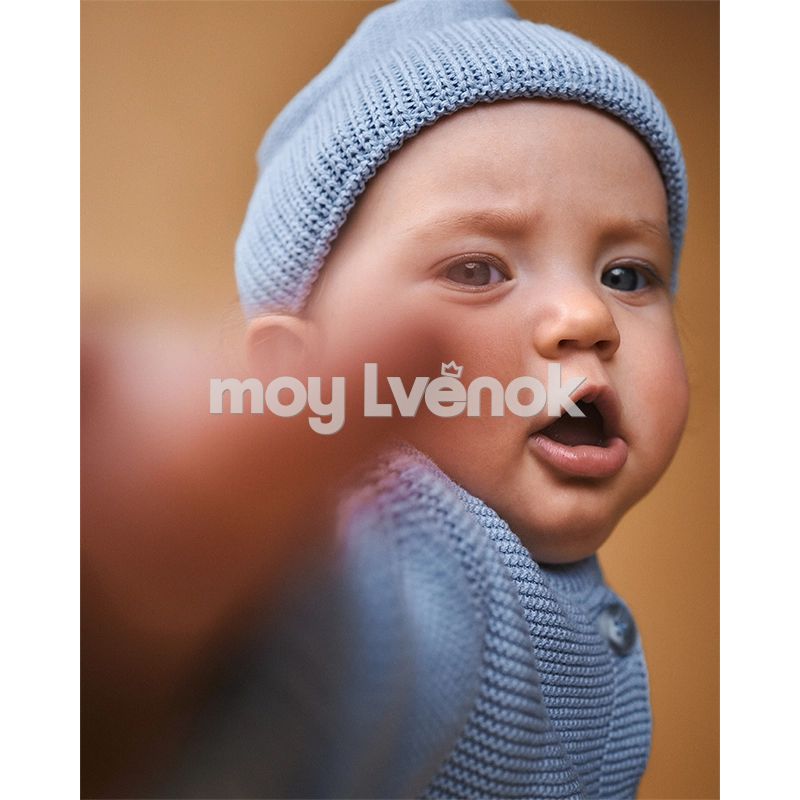 - Хлопковая пряжа сплетается в классический узор и мягко огибает головку малыша, закрепляя заботу эластичной резинкой.